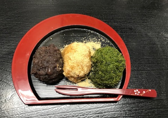 お彼岸にちなんで、おやつに三色団子が登場致しました。