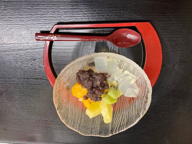 フルーツあんみつなど素朴で長く親しまれているオヤツも入居者様に大人気です。新型コロナウイルス対策をしっかりしつつ、健やかにお過ごしいただけるように設定された空調の中で御座いますと、10月でもフルーツあんみつはしっかり楽しんで頂けるオヤツになります。