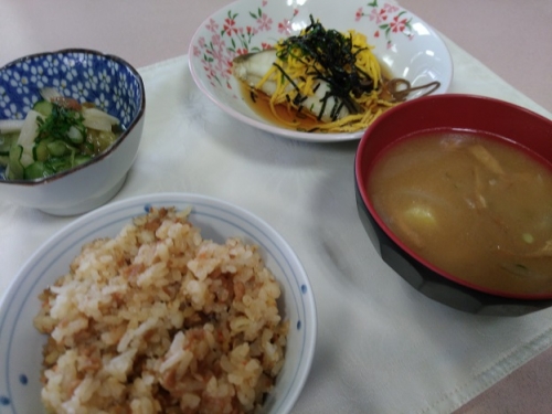 かしわの大きさが入居者様の事を考えて作られておりました優しいかしわ御飯でした。
