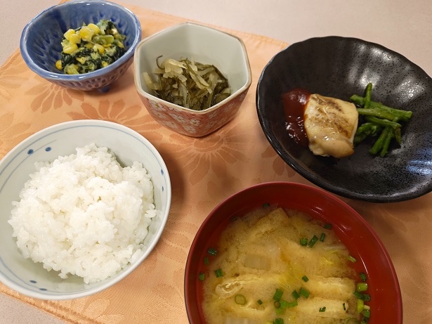 そして、ほっとする味わいのお味噌汁。温かい汁物は、寒い日に本当にありがたいです。当施設では、温かいものは温かいうちに、冷たいものは冷たいうちに、お食事をご提供することを大切にしています。