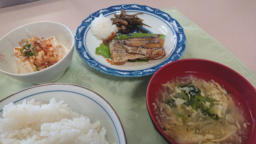 暑さが和らぐような献立が並びました。老人ホームで過ごされる方に季節感を感じて頂ける1つが食事ではないでしょうか。蒲焼風の濃いめのお味と冷奴のさっぱり味に、程よいボリュームで今日も楽しめる昼食でした。
