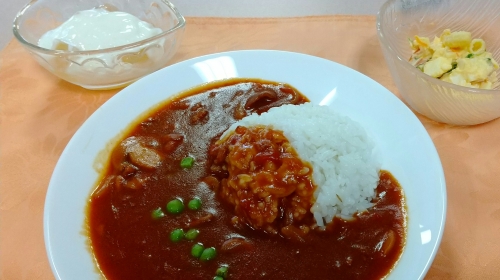 「ハヤシライス」が食卓に並びました。しっかりハッシュドビーフのお味がするハヤシライスはとても美味しいです。マッシュルームなどの旨味なのかコクもしっかり有りました。
