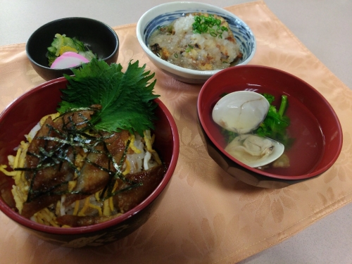 でした。ご自分で気づかれた方、介護職員や看護職員から案内されて、ハマグリに気が付いた方、それぞれビックリされておりました。また、ちらし寿司も飛龍頭も見た目もお味も好評でした。