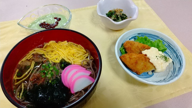 麺類は食べた後でもお腹がすくとおっしゃる方もいらっしゃいますが、しっかりしたトッピングがのっているふるさと舞松原の五目そばは食べごたえ十分で、入居様方も満足された表情をされておりました。