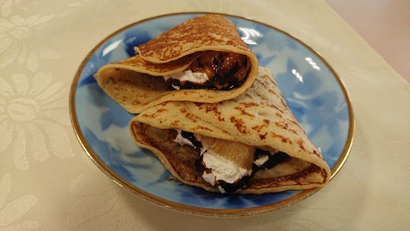 この日のレクリエーションでは「クレープ」を焼いて、入居者様がお好きにトッピングしていく事になりました。様々なクレープが出来上がる中で、秀逸だった作品を写真に撮らせて頂きました。