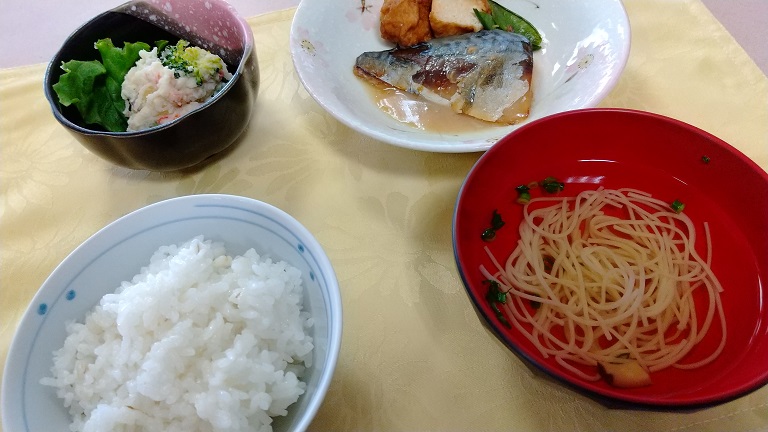食後に職員同士で話をしている時に聞いたのですが、西日本では「サバの味噌煮」よりも「サバの醤油煮」の方が食卓に並ぶ頻度がとても多く、ここ福岡でも同じだとの事。いつか利用者様にもどちらがよりお好きかをお聞きしたいと思います。