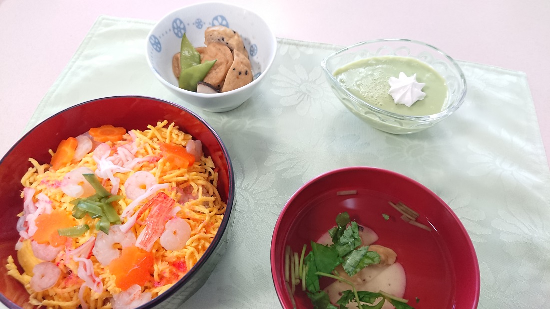 ひな祭りに因んだ献立と例年なっており、皆様期待しながら少しお待ち頂いて並びましたのはこちらになります。