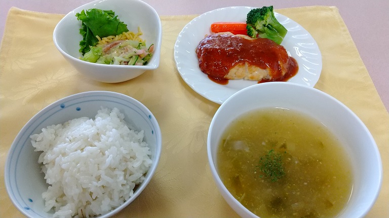 このようなアレンジでご提供させて頂いております。このような多彩な味付けもハンバーグが施設のメニューで人気がある秘訣なのかもしれません。