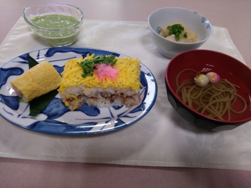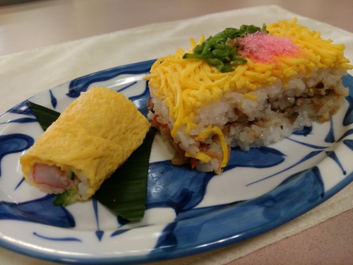 ミニ恵方巻が押し寿司とセットで昼食に出てきました。