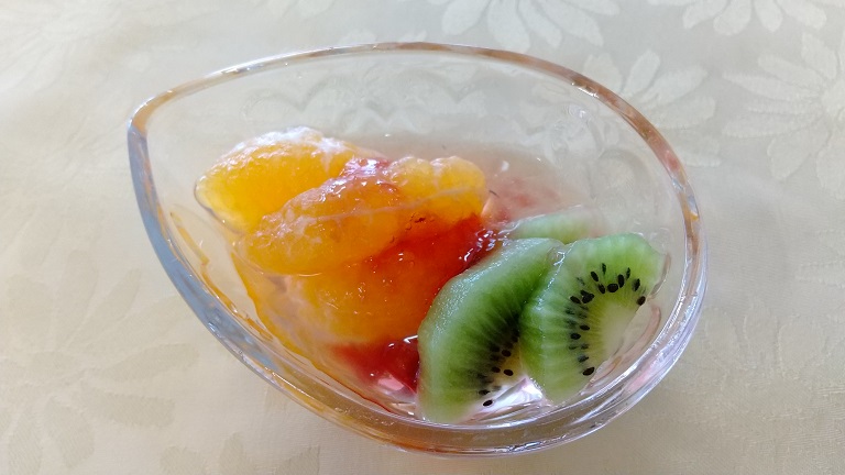 旬を迎えた夏みかんと彩りの良いキウイを使ったデザートで強いて名前を付けるとすれば、「天の川風寄せ」でしょうか。