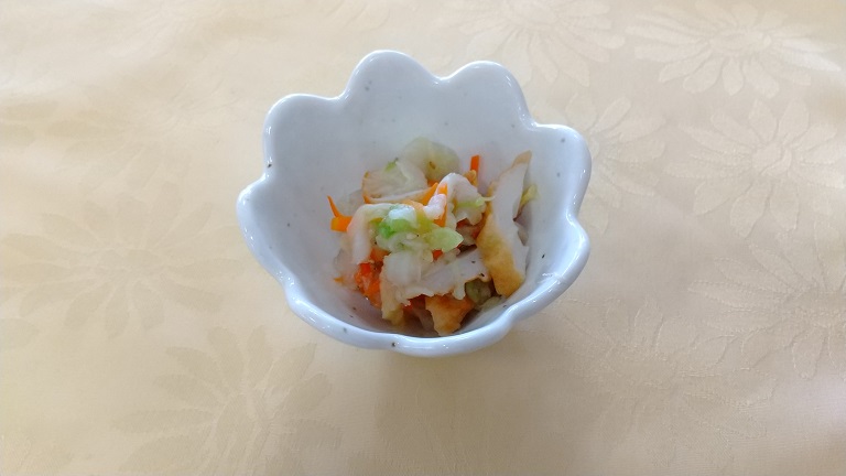 本日の小鉢は「白菜と竹輪の胡麻和え」です。