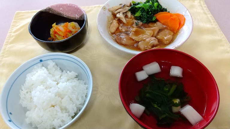 鶏肉の治部煮を主菜とした昼食のご紹介です。