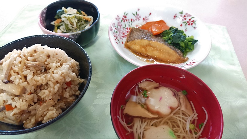 秋らしい炊き込みご飯が目に入ると入居者から嬉しそうなお声が聞こえてきました。本日も皆さんお食事を楽しんで頂けたかと存じます。