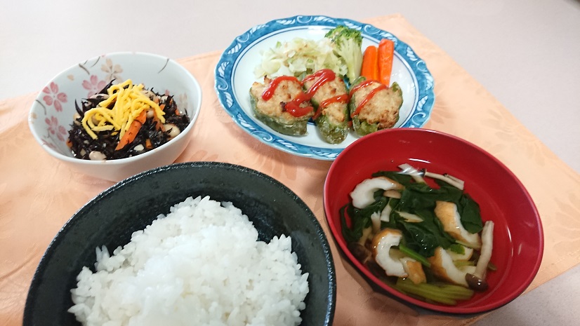 家でもよく作られるメニュー「ピーマンの肉詰め」が登場いたしました。