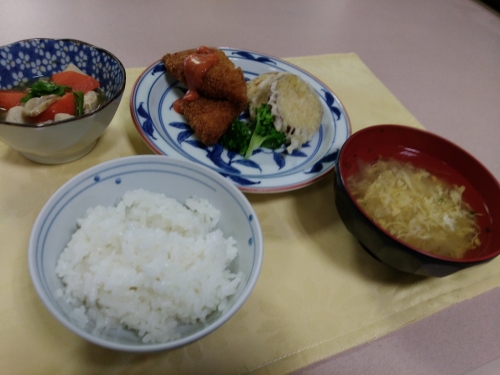 少し洋風に寄ったお昼のメニューです。フライと天ぷらが一度に味わえるメニューで、皆さん大喜びでした。