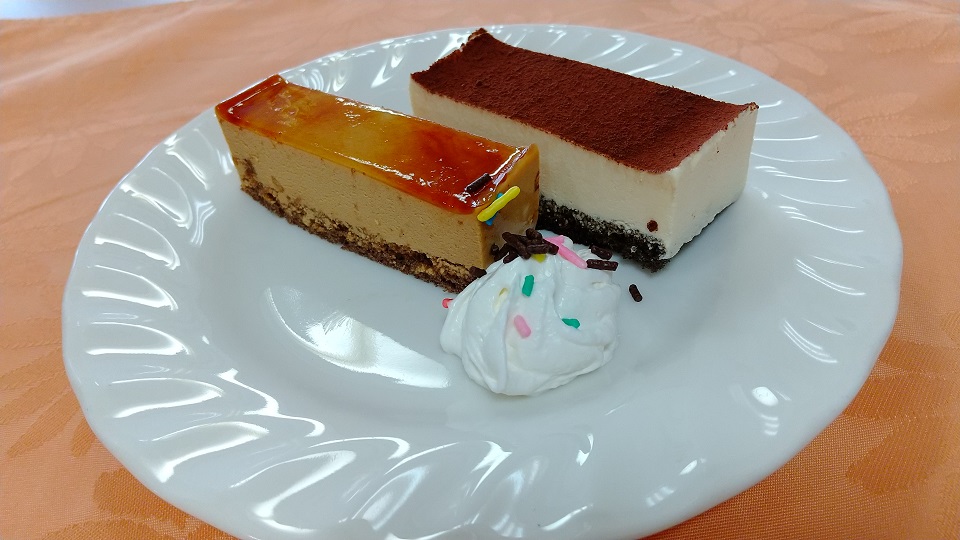 「ティラミス」と「キャラメル味が効いたプチケーキ」のケーキ二種類です。