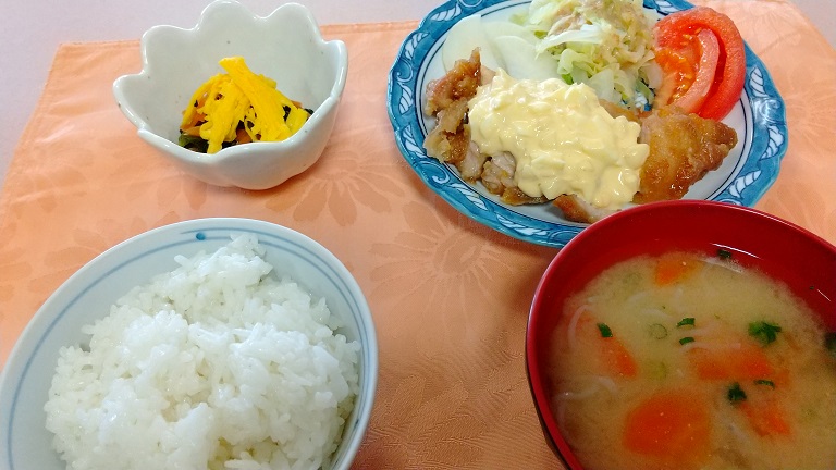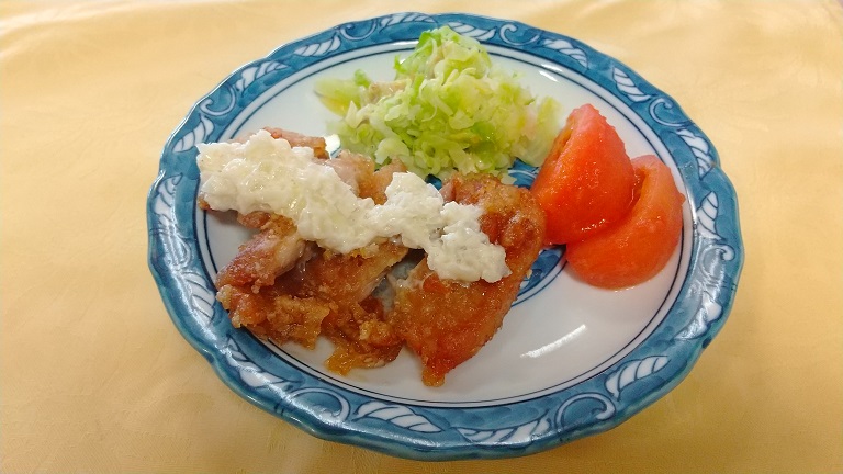 コロナ禍の前までは、事前にご予約頂けましたら有料では御座いますが入居者様と御一緒の献立をご家族様用に準備もさせて頂いておりました。チキン南蛮だけではなく、他のメニューでもたくさん良いメニューは御座いますので、コロナ禍が無事に過ぎて機会が御座いましたら、ご家族様にもぜひ当施設のメニューを召し上がって頂ければと存じます。