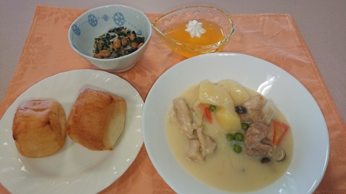ふるさと舞松原では、和食のメニューだけではなく、洋食メニューや中華のメニューも頻繁に出てきます。また、洋食メニューの際にはパンが食卓に並ぶ時も多いです。介護職や看護職、調理スタッフがサポートする事により、当施設ではパン食の提供が可能となっております。