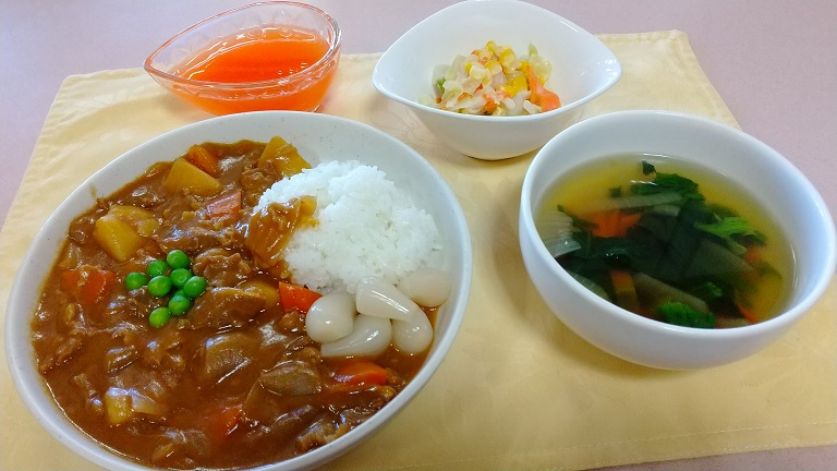 当施設では湯煎するだけのレトルトメニューを非常時以外は使用いたしません。食材を切り出すところから調理を開始しておりますので、不揃いかもしれませんが心を込めて調理をしております。