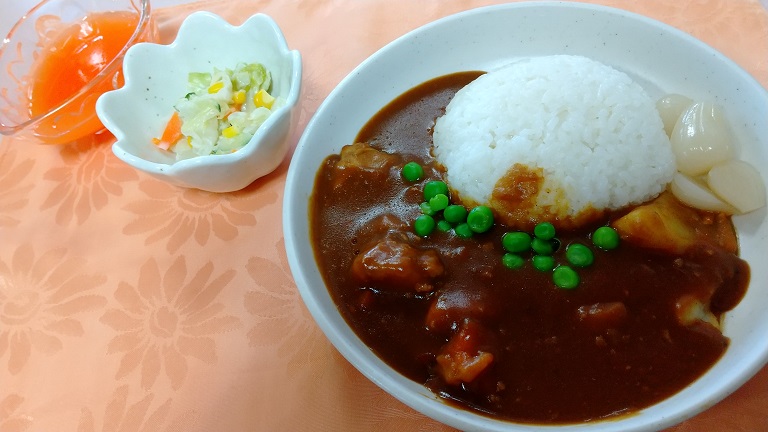 その為、同じ「カレーライス」でもこのように毎食変わってきます。他にも「ドライカレー」や「夏野菜カレー」など様々なバリエーションも御座います。(お料理名をクリックして頂きますとそれぞれの紹介ページに移動いたします)