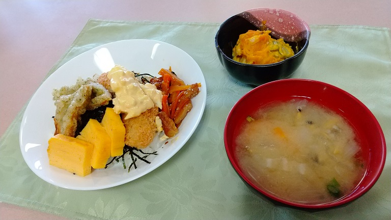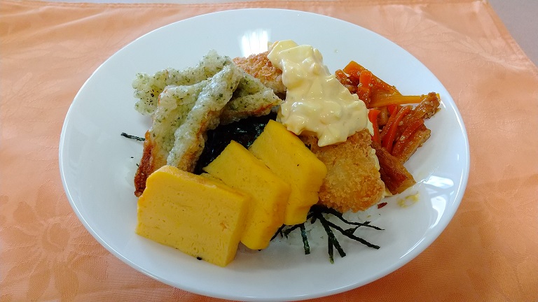 入居者様の何方でも知っていると思われる「のり弁風プレート」の登場に食堂では感嘆の声や楽しそうな声が聞こえておりました。