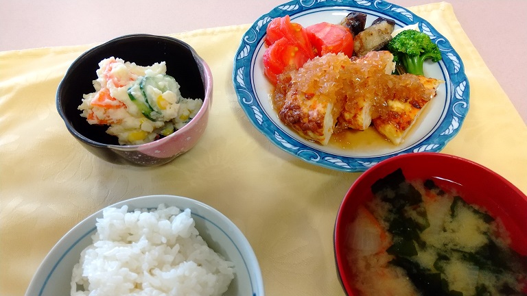和風ハンバーグソースに近いテリヤキソースをかけた豆腐ハンバーグです。豆腐ハンバーグ自体がさっぱりしておりますのでソースの味が丁度良く感じて美味しくいただけました。