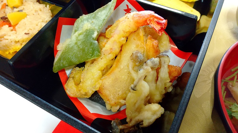 続きましてメイン、主菜のご紹介です。行事食の多くに登場する人気のお品「天ぷらの盛り合わせ」です。