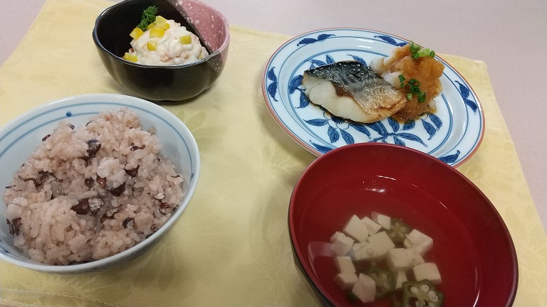 和食のご飯物にも当施設は力を入れております。毎月1日と15日は「お赤飯の日」となっており、半月の経過を感じて頂いたり、利用者様・入居者様の話題になればとも存じております。