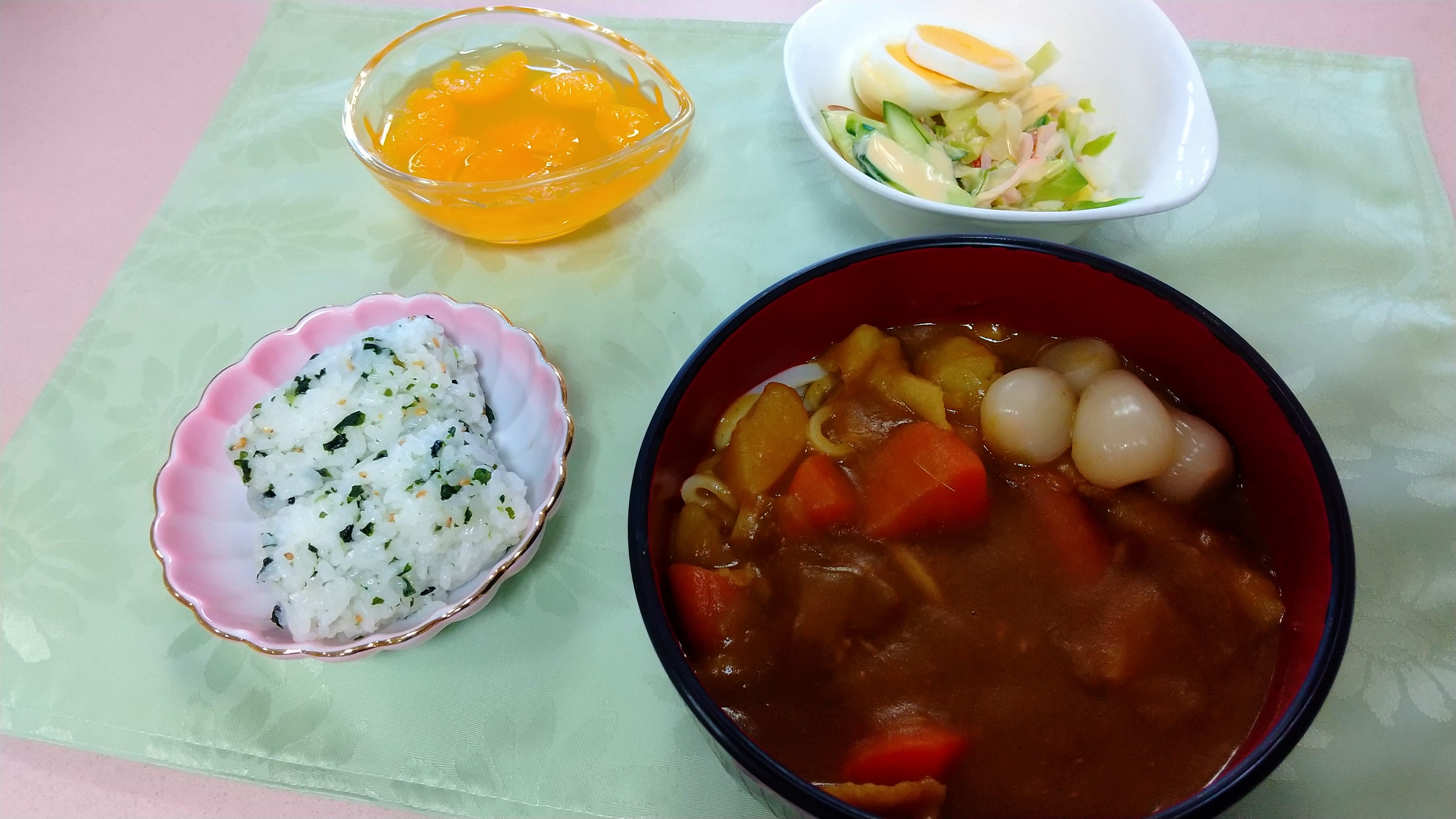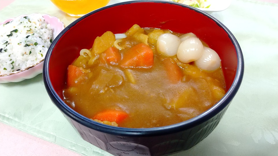 レトルトでは無いカレーをベースに作られた「カレーうどん」は優しい味でするすると食べやすく提供されておりました。当施設でもなかなか出会う機会が無いこの料理、カレー好きに方には大好評で御座いました。