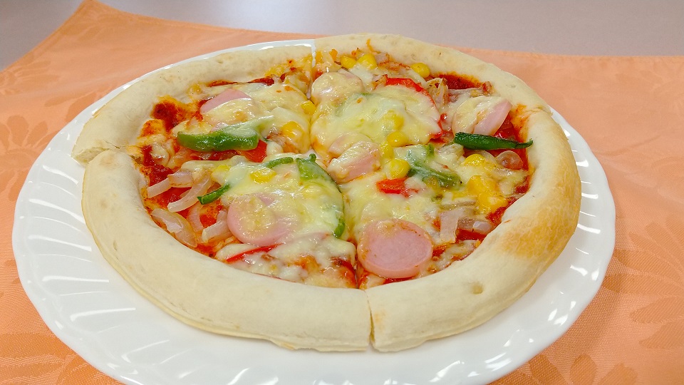 本日の昼食は、お食事に関するレクリエーション「食レク」で入居者様がそれぞれ手作りされたピザを中心としたお食事で御座います。