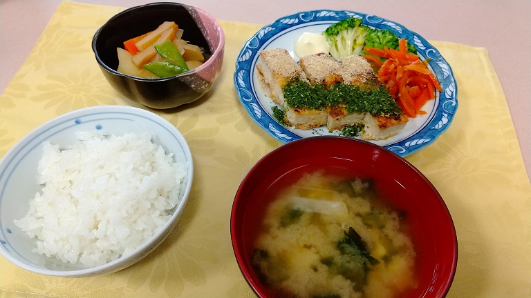 ご入居されております皆様の大半が、肉類がお好きな方ですので食べやすい松風焼きはとても人気のメニューです。(お魚も同じように人気ですが)歯に不安がある方でもしっかり噛む事ができますので、その辺りも人気のヒケツかと存じます。