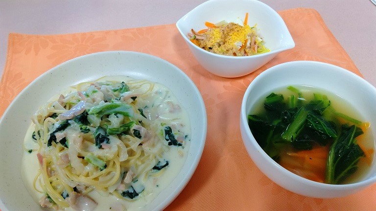 本日の昼食はパスタの日。