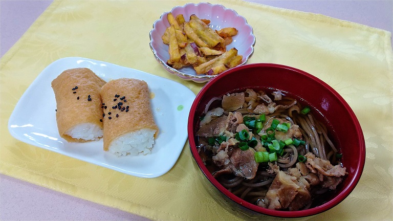 御当地では巻き寿司として調理するのが有名ですが、当施設では入居者様に食べやすく調理を行って「南関揚げそのもの」のお味を楽しんで頂けるように、このように調理いたしました。