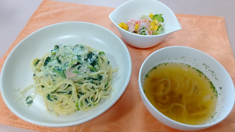 ご高齢の方々の中には麺類に対して苦手な方もいらっしゃいますが、このクリームスパゲッティであれば食べやすくて、忌避せずにどなたでも召し上がっていただけるのではないかと思われる出来栄えでした。