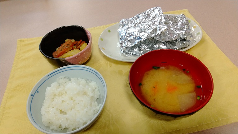 小鉢の「ジャガイモとウインナー炒め」も年齢層関係なく人気になりそうな味付けでしたが、本日は「魚のホイル焼き」がアイキャッチも味も一番で御座いました。