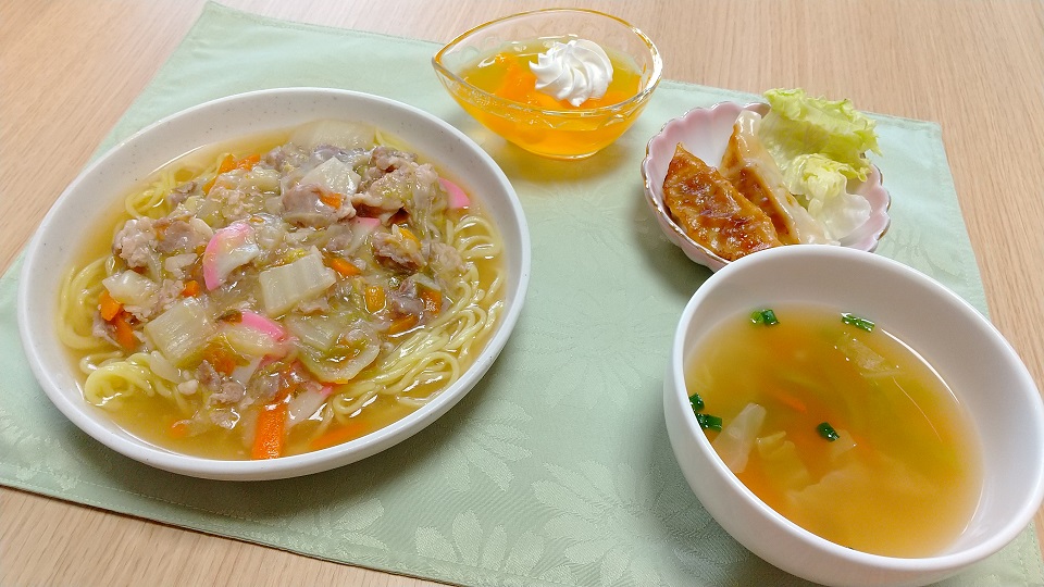 せめて少しでも気分が晴れればと「外食に行きたい」お気持ちを汲み取るべく、当施設の管理栄養士や調理士が普段の家では食べないようなメニューを時折お昼ごはんの献立に盛り込んでくれます。
