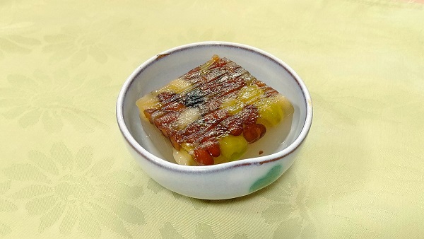 甘納豆で出来てはおりますが嫌味な甘さが全くなく上品な甘さを感じました。見た目の彩りで満足、食べて満足、他の献立とのバランスや食べ合わせで満足、和菓子として捉えるよりも献立の中で映えるこの小鉢は立派なお料理だと思います。本当に素晴らしいお料理でした。