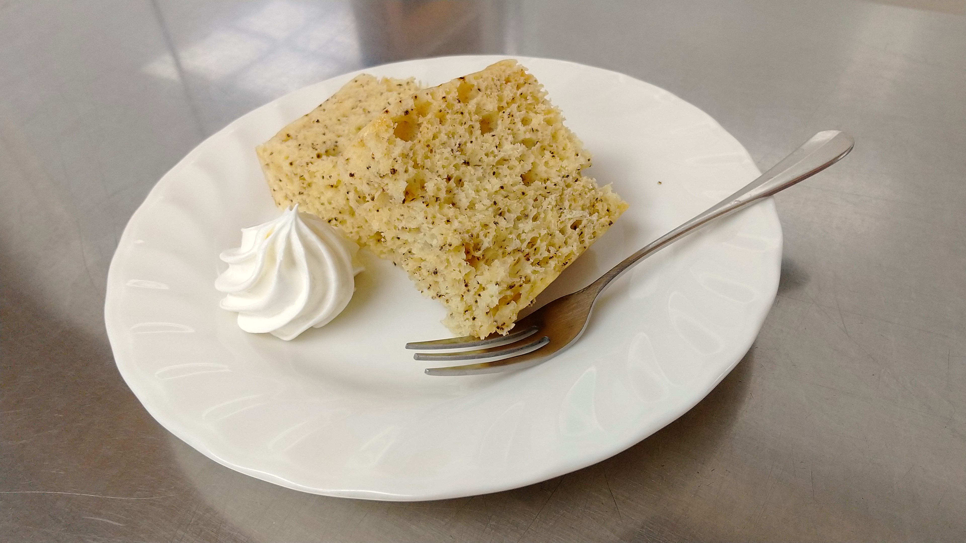 厨房内のスチームコンベクションを使用して作られた「紅茶ケーキ」はフワフワとの事。