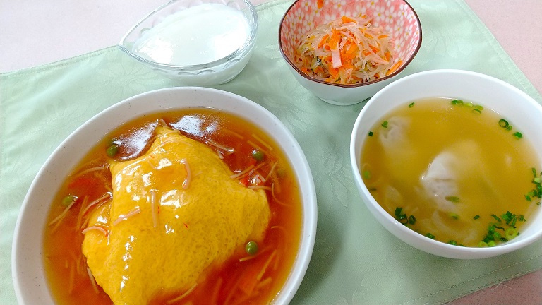 入居者様の箸の進み具合を拝見いたしますと「天津飯は日本発祥の中華料理」といった事を思い出しました。