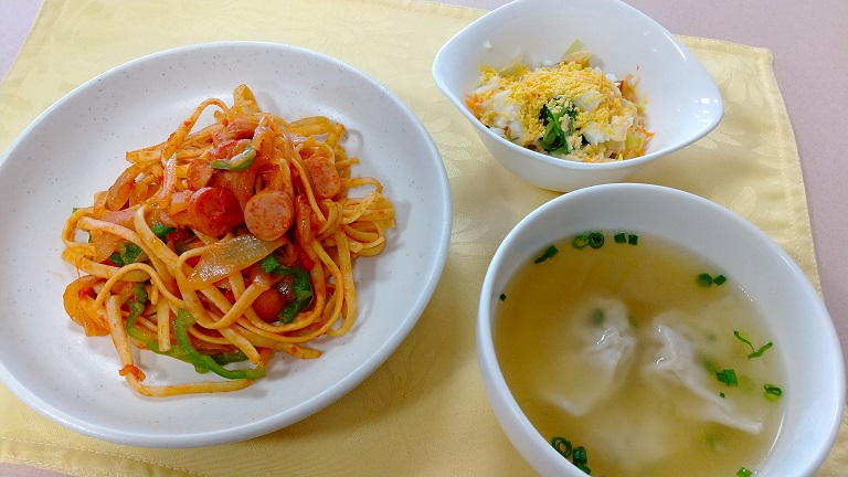 やっぱりフィットチーネですのでソースと言いますか、ナポリタン味が麺に程よくからんで本当に美味しいと評判でした。パスタの種類としての「スパゲッティ」を使ったナポリタンよりも、あっさりした感じで食が進んだと話された入居者様もいらっしゃいました。