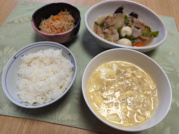 「八宝菜」「春雨と玉子スープ」「ビーフン炒め」が献立です。