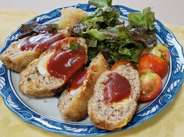 本日の主菜は手の込んだお料理のひとつ「スコッチエッグ」でした。