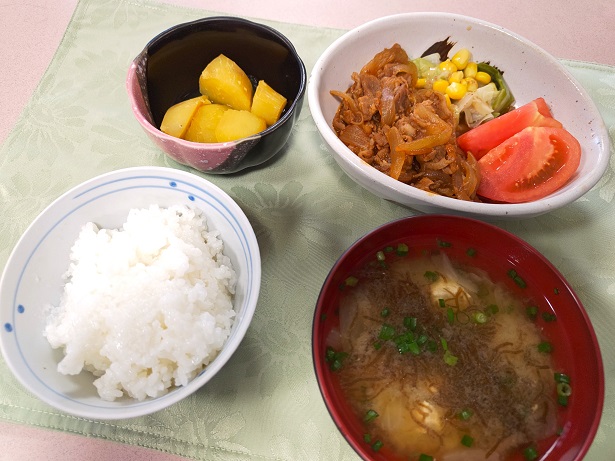 ポークチャップの添え物もふんだんに盛り付けられており、栄養バランスもバッチリでした。