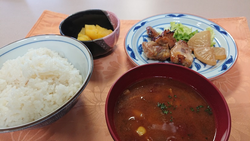 鶏の味噌煮の香ばしさ、旨味がしっかり出た、おやつにもおかずにもなるさつま芋のリンゴ煮、あえて「スープ」とメニュー表に表記されていたのが納得出来たミネストローネスープ。