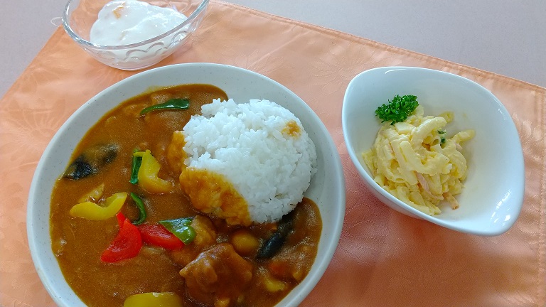 カレーの香辛料が健康に良い影響を与える話やイチロー選手の「毎日カレー」など話題にも事欠かない料理です。カレーにも色々なタイプがありますが、今回施設の食卓に並んだのはこちら、