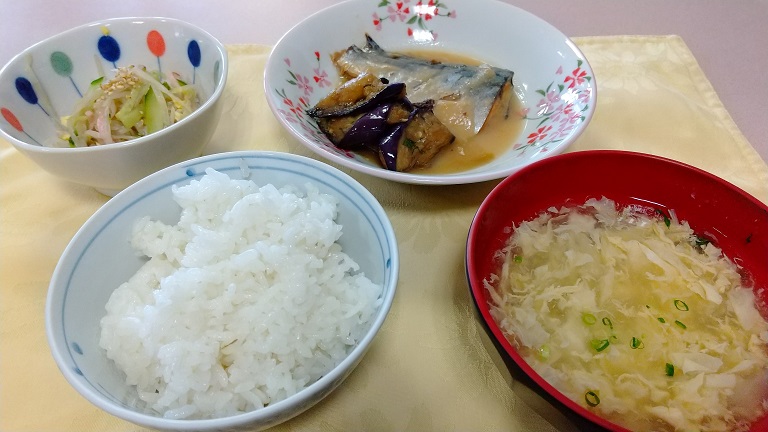 他の付け合わせも好きですが、茄子素晴らしいです。鯖の身も大きく、ご飯がとても美味しく頂けました。皆さんの残食もぐんと減った日で御座いました。