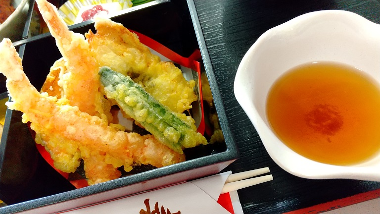 のんびり食べてもベタベタにならない考えられた天ぷら衣で、見事な海老が2尾・白身魚・おくら・しめじ・カボチャとこれだけでも十分なボリュームでした。